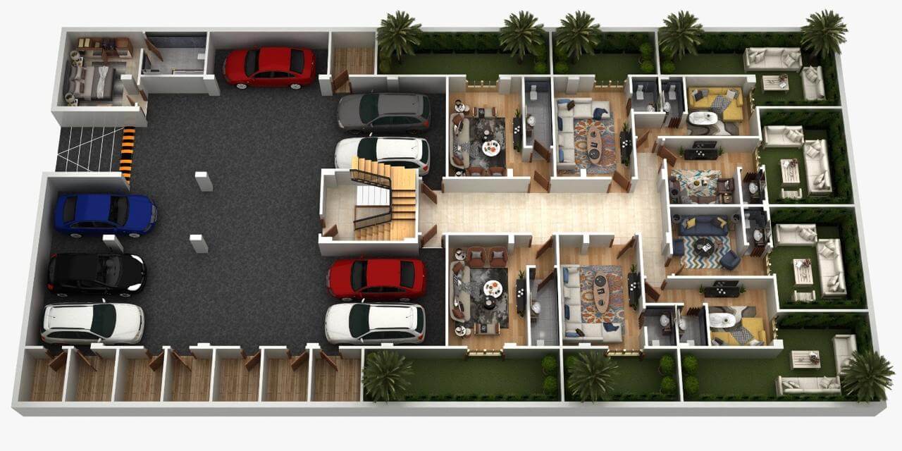 لأول مرة، نوفر لكل شقة (أرضي أو متكرر) استوديو إضافي بحديقة خاصة.